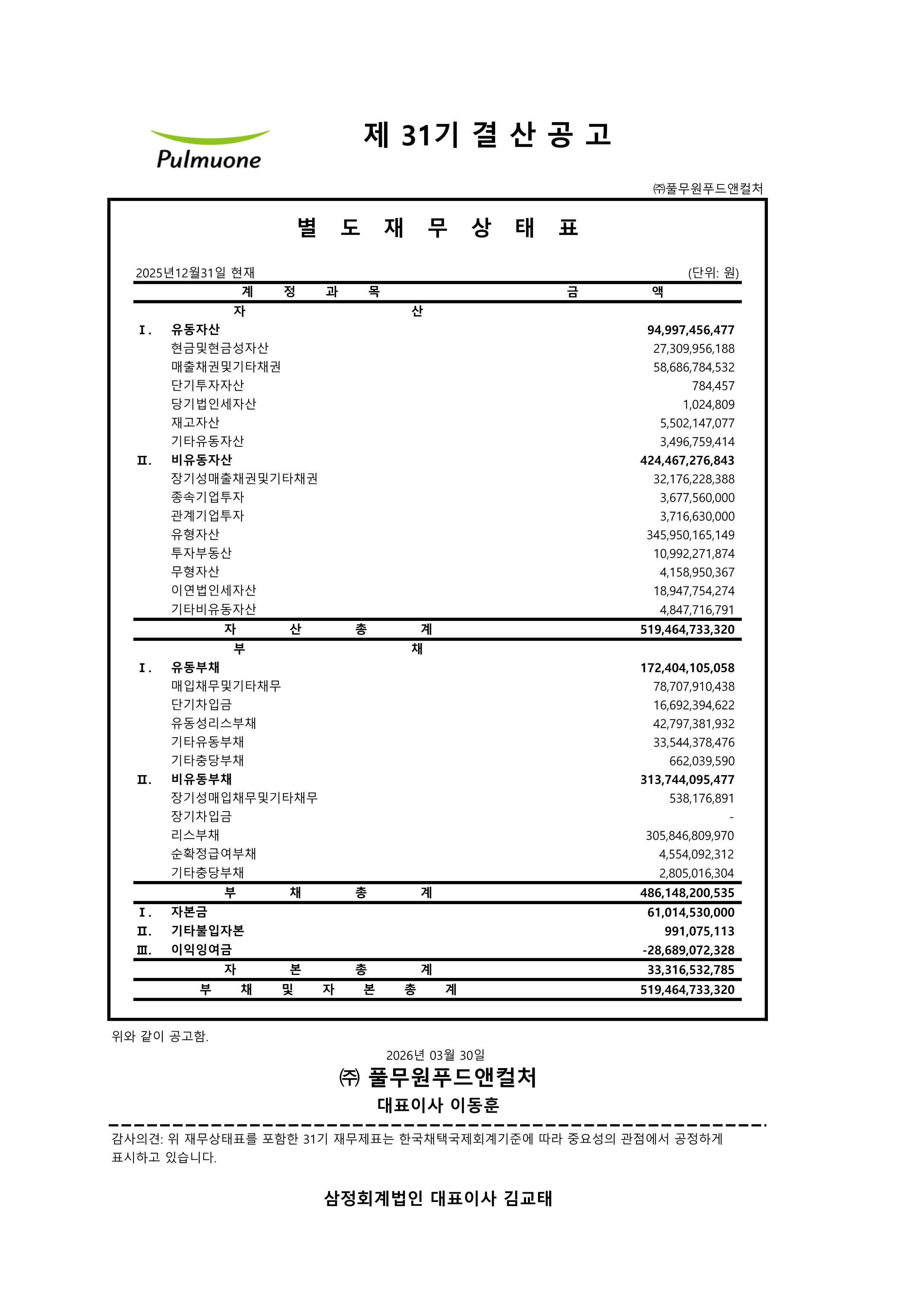 | 04월 | 식재유통 법인분리 (푸드머스) |